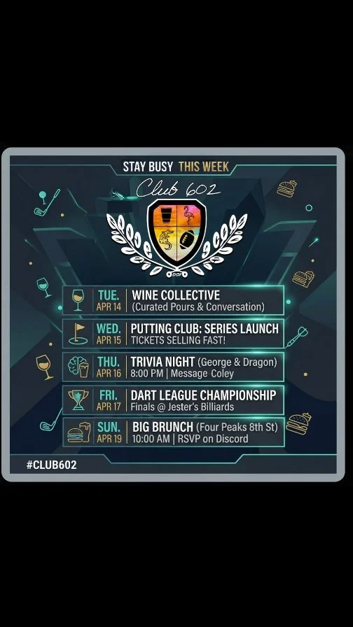 Club 602Sport & Social MERCH Subscribe Sign up with your email address to receive news and updates. Email Address Sign Up We respect your privacy. Thank you!